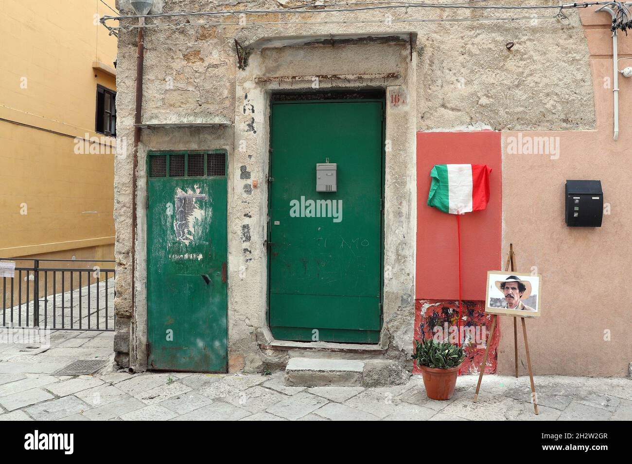 In The Photo The House Where Ciccio Ingrassia Was Born Discovered A Plaque With His Grandchildren And The Deputy Mayor Giambrone Stock Photo Alamy